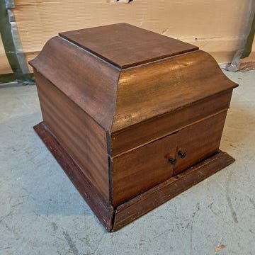 Ældre pladespiller der har stået inde i mange år, og er så flyttet ud til at stå tørt med koldt ca. 8 år siden. Tilstand: Utestet.