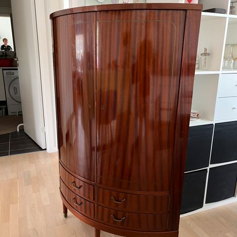 Hjørneskab i Mahogni (180 cm højt) med glas låge