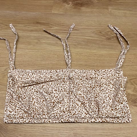 Sengelommen er både fin og praktisk med sine bindebånd, så den nemt kan bindes fast på sengen eller ved puslebordet.