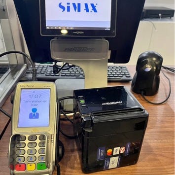 Kasseterminal med tilhørende skærm, tastatur, printer, stregkodescanner og kortterminal. Systemet er velegnet til brug i detailhandlen terminalen har været brugt i fysisk butik integreret men lagerstyring og webshop.