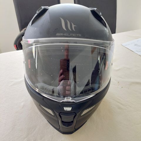 Sælger min næsten nye flip-up hjelm i størrelse L. Den har indbygget solbrille, som nemt betjenes fra siden, og er kun brugt et par gange. Fremstår i rigtig flot stand.prisen er sat ned til 550 Kr.