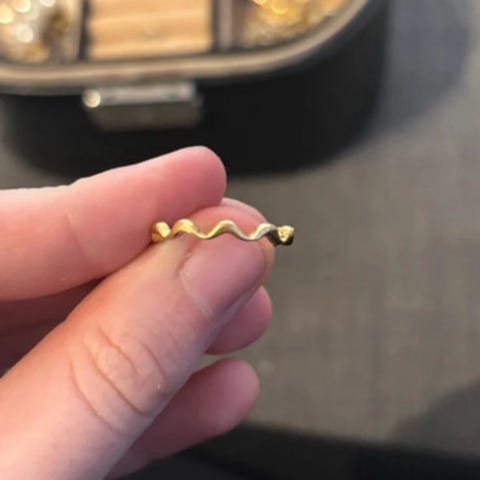 Denne ring har et moderne samt romantisk udtryk med sin unikke, bølgende form. Det åbne design gør ringen justerbar og behagelig at bære. Et perfekt valg til dig, der ønsker et iøjnefaldende smykke med personlighed og stil. 💧 Smykket er vandfast og kan tåle vand, sved og parfume.