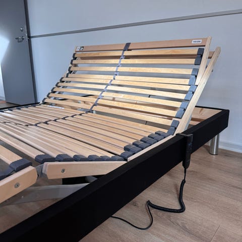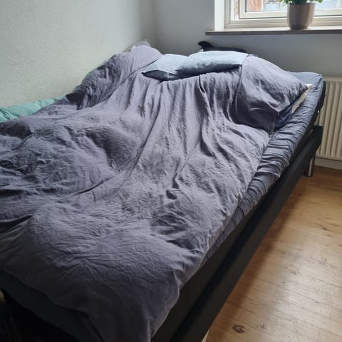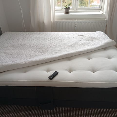 Elevationsseng 140 x 200, købt i 2022 hos Sejr dyner. Nypris 12.000kr incl topmadras. Medium hårdhed, med latex topmadras.