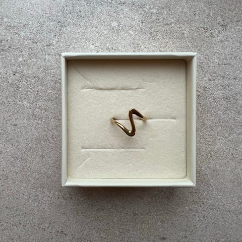 - Denne ring har et moderne samt romantisk udtryk med sin unikke, bølgende form. Det åbne design gør ringen justerbar og behagelig at bære. Et perfekt valg til dig, der ønsker et iøjnefaldende smykke med personlighed og stil.