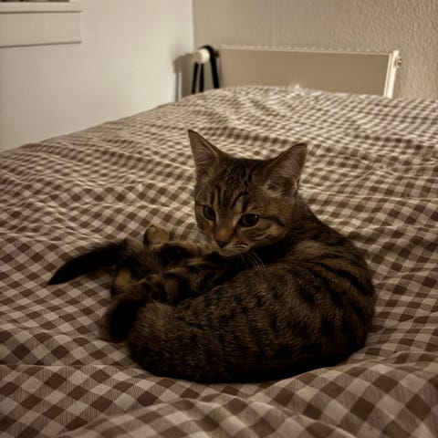 Denne charmerende grå killing er både nysgerrig, kælen og fuld af personlighed. Den har de fineste grå øjne og en blød, ensfarvet pels, som man slet ikke kan lade være med at nusse 🐾