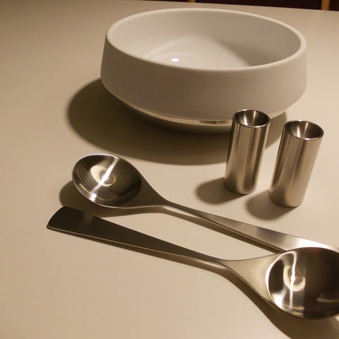 I alt 5 dele: Hvid Kontra salatskål med stålbund. Stelton salt og peber sæt designet af AJ, samt Stelton Maya serveringssæt. ,Afhentes i:,Røde Kors Bellinge (461),Bemærk at mail, chat og beskeder ikke besvares, og varen skal købes på knappen "Gå til varen"