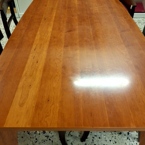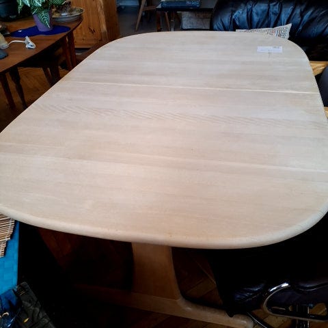 Bordet er rektangulært og har en glat overflade. Det er lavet af træ og har fire ben. Naturtræets farve understreger bordets enkle stil.,Afhentes i:,Røde Kors Bellinge (461),Bemærk at mail, chat og beskeder ikke besvares, og varen skal købes på knappen "Gå til varen"
