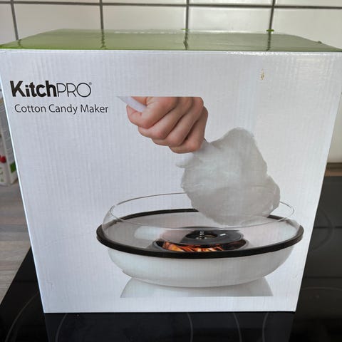 - Pakken indeholder: 1 x candyfloss-maskine, 1 x måleske, 10 x bambuspind