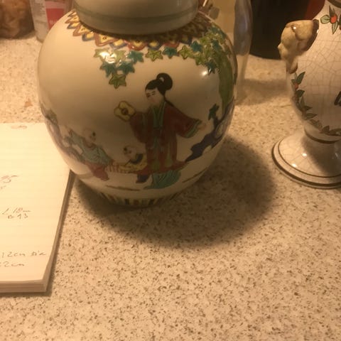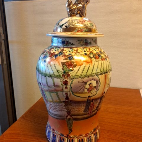 Kinesisk dekorativ porcelænsurne med farverigt motiv