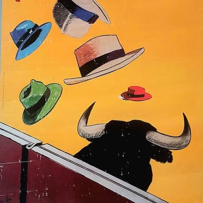 Smukt vægplakat for Toro de Valencia (Spanien). Pragtfulde tyrefægtninger, Feria de Julio.
