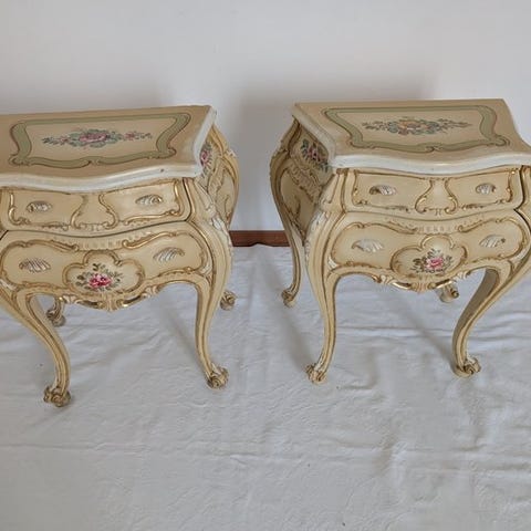 Antikt italiensk natbord i massivt træ, daterbart til de første år af det forrige århundrede, et autentisk udtryk for tidens borgerlige boligindretning. Den kompakte og velproportionerede konstruktion, forenet med enkle og rene linjer, gør dette møbel til et elegant og alsidigt element, der naturligt passer ind både i tidstypiske omgivelser og i rum med en mere eklektisk stil.