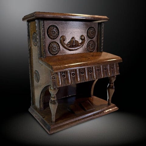 Interiøret er forsynet med rødt velour. Alt er i en smuk, uskadt stand med normale lette brugsspor i forhold til alderen. Se billederne her.