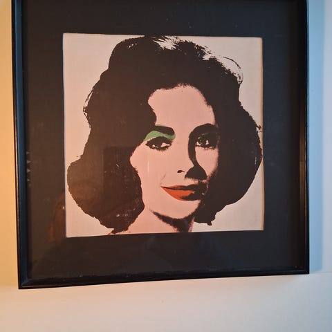 Elizabeth Taylors ansigt træder frem med Warhols karakteristiske farvemæssige kontraster: intense røde baggrunde, meget lys hud, dybe sorte skygger og skarpe makeup-detaljer. Hollywood-divaen bliver en absolut ikon, forvandlet til et serielt og populært billede, hvilket er et tegn på filmens mediemagt.