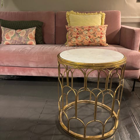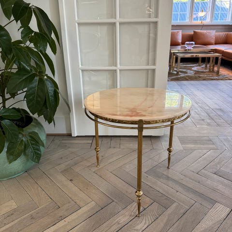 Sidetisch med marmorbordsplade, fremstillet af massivt træ fra Frankrig, i mid-century modern stil med originalt marmorbord i varme lyserøde nuancer, mål 60 cm høj, 58 cm bred, 30 cm dyb, en del, i god vintage stand med normale brugsspor og pletter. Klik på den blå "gå til varen" knap, for at købe eller byde på denne vare. Den samlede pris vil blive vist inden du afgiver dit bud.