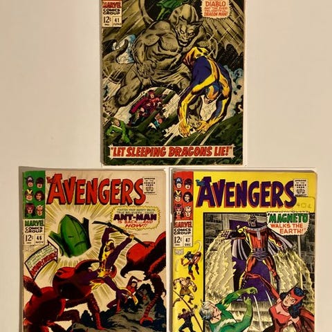 The Avengers, Første udgave, Marvel Comics, Tegneserie, Origin of Mantis / 1. optræden af Scott Lang (Ant-Man) i et komplet sæt af 10 hæfter (#116, 119, 123, 130, 147, 175, 181, 189, 191, 200) i Very Fine stand, tegnere Stan Lee, Don Heck, Frank Giacoia, George Pérez og Vince Colletta. Klik på den blå "gå til varen" knap, for at købe eller byde på denne vare. Den samlede pris vil blive vist inden du afgiver dit bud.