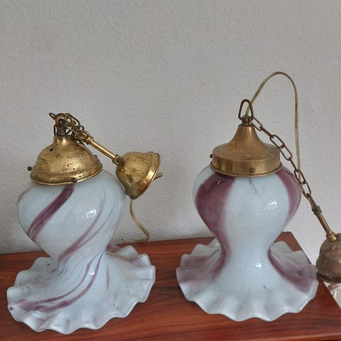 Godmorgen, venner... vi vender tilbage til det extraordinære med dette sæt væglamper... godt at nævne, at jeg elsker denne blå farve; lad os gå i detaljer: tvillinger-paret... + en enkelt central buet måler 35 x 35 cm... betragt håndværket bag dette vidunderlige Murano-kunstværk... indhak indrammet i et jerngitter med en enestående design og enestående blå farve klar til at oplyse den magiske nat... ønsker jer venner... lanterne er samlet ved træ i en lidt rudimentær måde; hvis ønsket kan den samles bedre, og hvis I kan lide at ændre træfarven efter behag, kan den ændres til eget ønske på 10