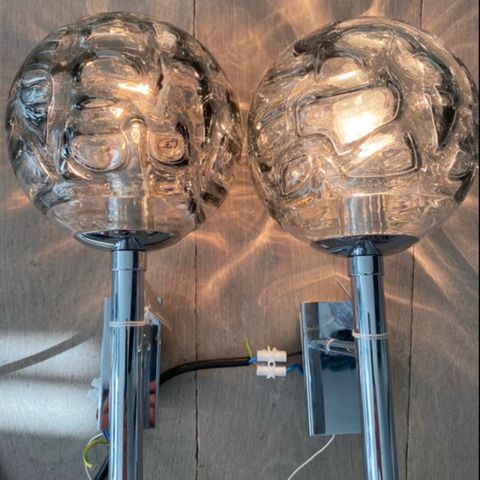 Et sæt på tre Murano-glashyldninger i blå Art Nouveau-stil fra Veneto, Italien, 1980–1990, mål 35 x 35 x 15 cm, hver med én fatning, i god brugt stand med mindre alderspletter, to tvillinger og en centralt buet lampe, i funktion. Klik på den blå "gå til varen" knap, for at købe eller byde på denne vare. Den samlede pris vil blive vist inden du afgiver dit bud.