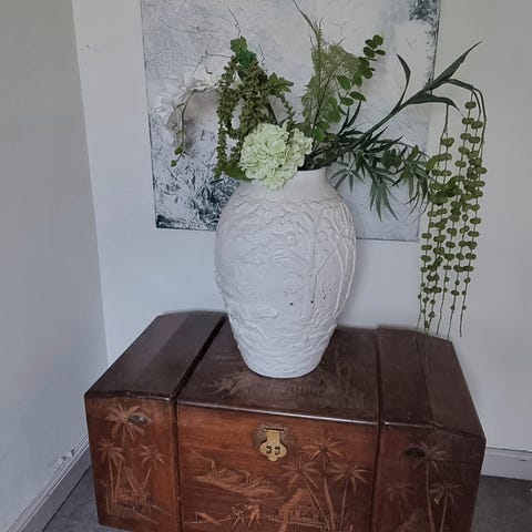To indonesiske træsnitsskrin med thailandske motiver, dateret cirka 1940–1950, i fremragende stand, hver med en fungerende lås og to nøgler, dimensioner cirka 33,5 × 16 × 17 cm og 30,5 × 21,5 × 10 cm. Klik på den blå "gå til varen" knap, for at købe eller byde på denne vare. Den samlede pris vil blive vist inden du afgiver dit bud.