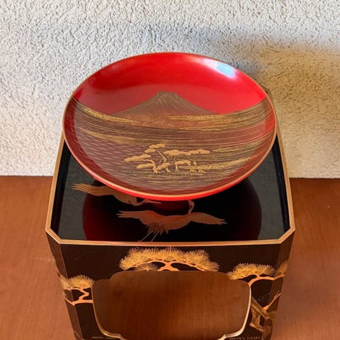 Rød og guldbelagt lakkeret sakebeholder - Japan - Meiji-perioden (1868-1912)