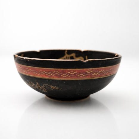 Meiji-periode sort, rød og guldlakeret sakebeholder i form af en siddende Shōjō med rødt hår og en dobbelt grætbag på ryggen; oprindelse Japan; mål: 8,7 tommer høj, 5,5 tommer bred, 3 tommer dyb; fremragende stand. Klik på den blå "gå til varen" knap, for at købe eller byde på denne vare. Den samlede pris vil blive vist inden du afgiver dit bud.