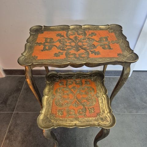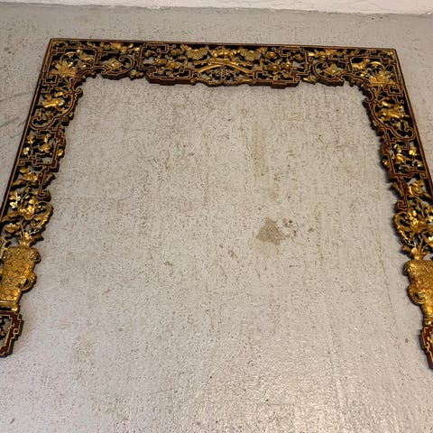 Set af fire håndskabte kastanietræspaneler i barok stil fra det sydlige Frankrig, dateret til 2. halvdel af 1800-tallet, bestående af to kvadratiske paneler og to rektangulære skuffefronter, med rige ornamenter af slynger og vegetation, måler 32 × 27 × 2 cm og vejer 2,5 kg, med antik patina. Klik på den blå "gå til varen" knap, for at købe eller byde på denne vare. Den samlede pris vil blive vist inden du afgiver dit bud.