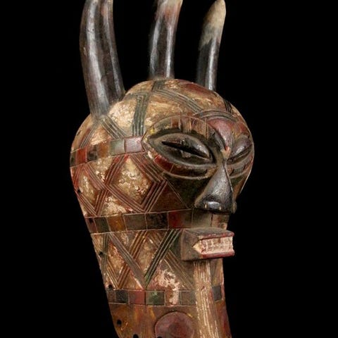 Maske fra Makonde-folket fra Tanzania, træ, 29 cm høj, 20 cm bred, 9 cm dyb, vægt 790 g, provenance Privat Sammlung Österreich. Klik på den blå "gå til varen" knap, for at købe eller byde på denne vare. Den samlede pris vil blive vist inden du afgiver dit bud.