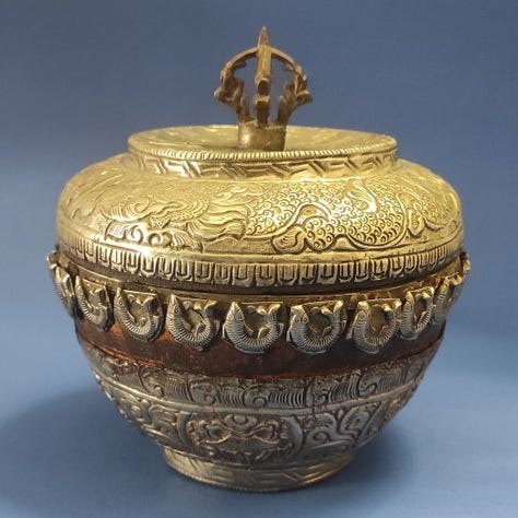 Kasse Taji hanengevechtdoosje - cockspur case - wajang Semar - Bali Lombok - ...