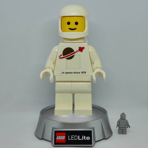 Brugt, åben emballage, håndlavet 3D-printet kopi af en Classic Space minifigur, ca. 35 cm høj i plast, bevægelige arme og ben og aftagelige tilbehør; ikke et officielt LEGO-produkt, beregnet som dekorativ samlergenstand til voksne. Klik på den blå "gå til varen" knap, for at købe eller byde på denne vare. Den samlede pris vil blive vist inden du afgiver dit bud.