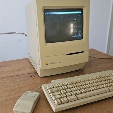 Dette er en sjælden Apple Macintosh SE med originalt tilbehør og en sjælden original Apple rejsetaske.