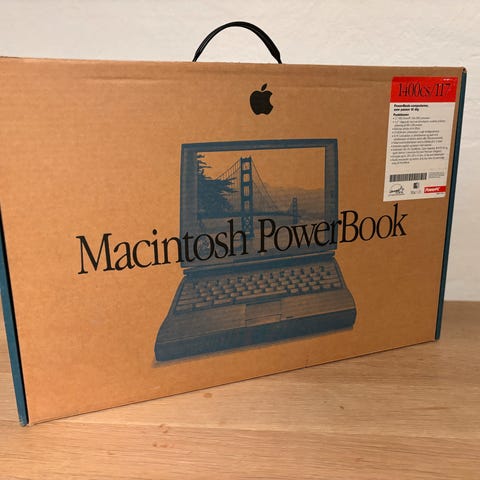Apple PowerBook 5300 med masser af tilbehør. PowerBook'en fungerer, men har nogle kosmetiske skader, som det kan ses på billederne. Den kan åbnes og lukkes. Der medfølger et ZIP-drev, et floppy-drev og en 1,2 GB harddisk.