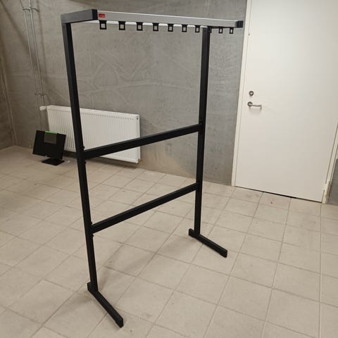 Vintage fritstående hængestativ i smedet jern fra Italien, ca. 1950–1960, i god vintage stand med sædvanlige aldersmærker; højde 170 cm, basens diameter 45 cm. Klik på den blå "gå til varen" knap, for at købe eller byde på denne vare. Den samlede pris vil blive vist inden du afgiver dit bud.