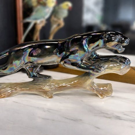 Denne genstand tilskrives den hollandske producent Jema Ware, som primært var aktiv i årene 1950’erne til 1970’erne, anerkendt for sine dekorative figurer i støbt keramik, håndmalede. Modellen har en blank glasur og velafgrænsede farvegradienter, særligt