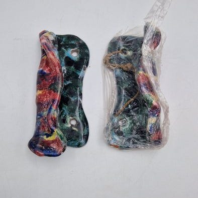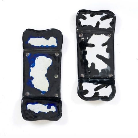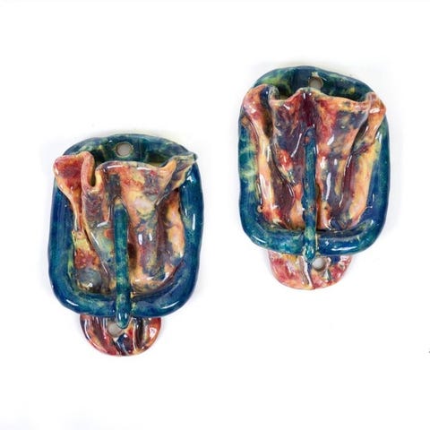 Par smykket terracotta håndtag, italiensk produktion, 1960'erne, mål 17 x 16 x 5 cm, i meget god stand. Klik på den blå "gå til varen" knap, for at købe eller byde på denne vare. Den samlede pris vil blive vist inden du afgiver dit bud.
