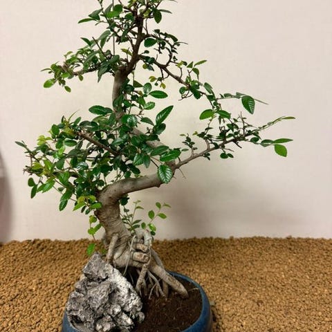 De Serissa bonsai, også kendt som 'træet med tusind stjerner', fortryller med sine fine blade og utallige små, hvide blomster, der synes at funkle som stjerner. Denne elegante skikkelse blomstrer flere gange om året og bringer igen og igen et strejf af magi ind i hjemmet.