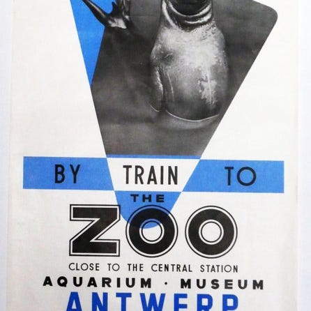 Original reklameplakat for Antwerp Zoo af Paul Funken (signatur i højre kant) dateret omkring 1970. Grafiker Funken bruger et foto af to toekans, der modigt ser ud til seeren fra deres gren. Deres karakteristiske, skarpt orange næb vender tilbage i den nederste del af plakaten. Dette er den sjældne hollandsksprogede version. En iøjnefaldende opmærksomhedsfanger!