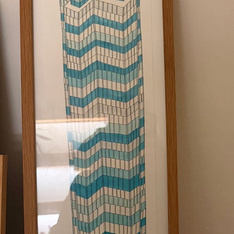 Plakaten er foldet sammen, men hvis du folder den ud, kan du ikke længere se foldningen.