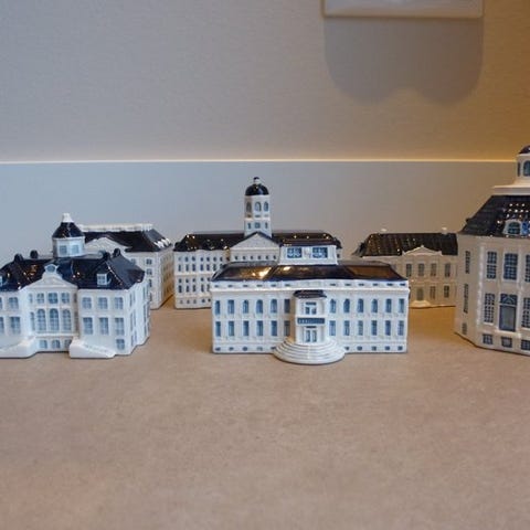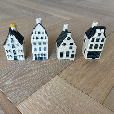 Fem Delft blå keramiske husfigurer, nummereret 1–5, alle forseglet, som nye og fyldte, hver ca. 10 cm høj, 5 cm bred og 6,5 cm dyb, oprindelse Nederlandene. Klik på den blå "gå til varen" knap, for at købe eller byde på denne vare. Den samlede pris vil blive vist inden du afgiver dit bud.