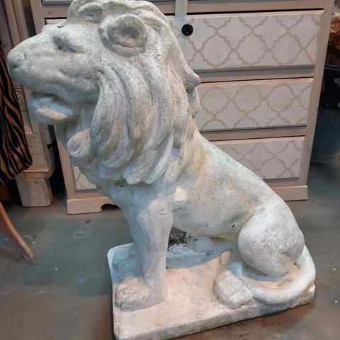 Stor løvegruppe – ny, par statuer i MGO, hver 75 cm høy, 26 cm bred, 36,5 cm dyp, vekt 21 kg, produsert i Europa i 2026; fremragende stand og ikke signert. Klik på den blå "gå til varen" knap, for at købe eller byde på denne vare. Den samlede pris vil blive vist inden du afgiver dit bud.