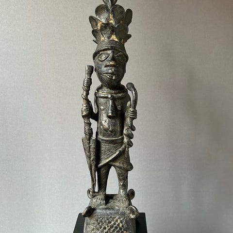 Bronzeanklet fra Mongo/Ekonda-kulturen i DR Kongo, med provenance fra den østrigske samling R. Herzog Wien, vægt 2270 g, mål 15 mm høj, 12 mm bred, 14 mm dyb, leveres uden stand, i acceptabel stand. Klik på den blå "gå til varen" knap, for at købe eller byde på denne vare. Den samlede pris vil blive vist inden du afgiver dit bud.
