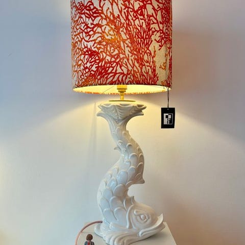 Italiensk Capodimonte keramisk lampe i Art Nouveau-stil, ca. 1960–1970, målene 45 × 20 × 20 cm, med én fatning, i god brugt stand og i funktion. Klik på den blå "gå til varen" knap, for at købe eller byde på denne vare. Den samlede pris vil blive vist inden du afgiver dit bud.
