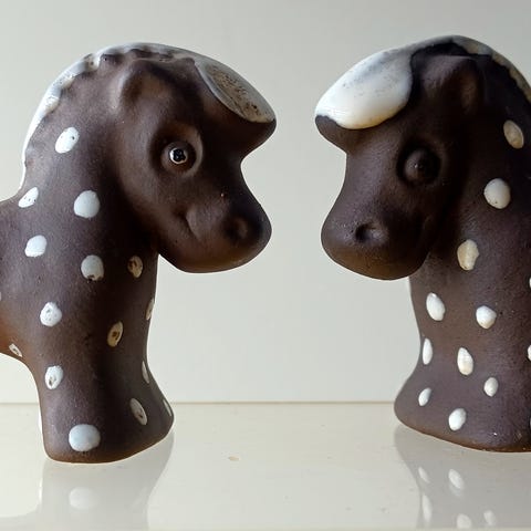 Meget smukke par statuer som bogstøtter i form af heste i forgyldt bronse, i fremragende stand, begyndelsen af det 20. århundrede, i gotisk stil. Dimensioner: 18 cm i højden, 15 cm i bredden, 12 cm i dybden og 1,5 kg + emballage, afsendes i en sporbar pakke på 2 kg.