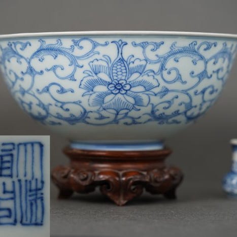 En smuk antik kinesisk porcelæn, sjælden robins æg glaseret hummer, krabbe og fisk børstevasker formet som et flydende lotusblad med krøllede kanter, dækket af en sjælden robins æg glasure. Fremragende kvalitet, værdig til udstilling på et museum. Håndlavet i det gamle Kina under Qing-dynastiet, Yongzheng til Qianlong; første halvdel af det 18. århundrede (1725-1750). På bagsiden er også fuldt glaseret, hvilket viser lotusbladsmønstre. Garanteret original og fra den angivne periode.
