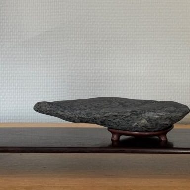 Suiseki Funagata-Ishi, natursten fra Japan fra Heisei-perioden, mål 13 × 6 × 6 cm, i god stand, sælges med sin daiza (fod), fra privat samling. Klik på den blå "gå til varen" knap, for at købe eller byde på denne vare. Den samlede pris vil blive vist inden du afgiver dit bud.