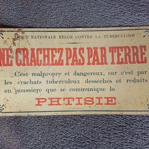 I strålende stand og originalt, emailleret forbudsskilt: "Forbudt at smide affald" fra 70’erne, og lavet i Frankrig. Det røde, kugleformede skilt har hvide bogstaver, der ligger i relief på skiltet. Desuden har skiltet en hvid ramme, og alle ophængsslag er intakte.