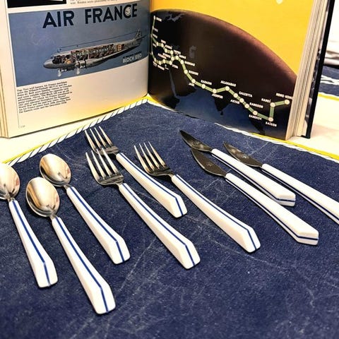 Seks KLM-porcelænsfade, en skål og et serveringsfad i hvidt porcelæn, designet af Marcel Wanders for KLM og fremstillet i Nederlandene mellem 2010 og 2020, i fremragende stand med minimale brugsspor. Klik på den blå "gå til varen" knap, for at købe eller byde på denne vare. Den samlede pris vil blive vist inden du afgiver dit bud.
