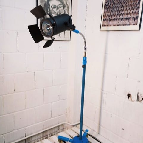 Det er et klassisk design bestående af et medicinsk lampe-stativ og reflektorlamper, der er monteret på det.