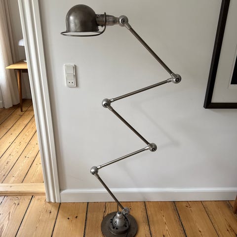 Ikonisk industrilampe med 6 arme. Jieldé-lampen blev fremstillet i 1950'erne af Jean Louis Domecq i Frankrig [Lyon]. Jieldé-lampen er en klassiker inden for fransk industriel design. Det faktum, at den er fra sin tid.