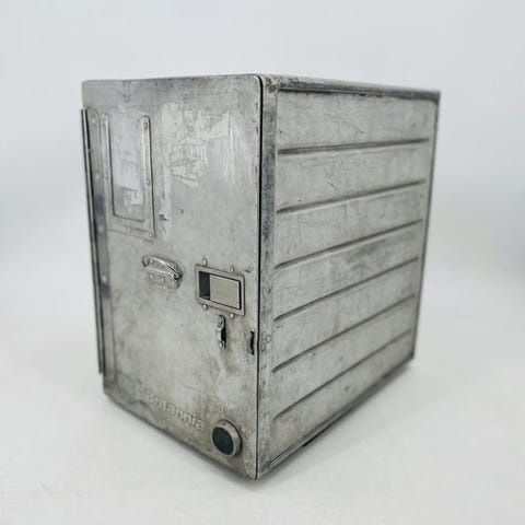 Nyt aluminium affaldsspand til flygalley til flytrolleys, højde 83 cm, bredde 27,5 cm, dybde 35,5 cm, produceret af Driessen Aerospace – Zodiac i Nederlandene, uåbnet og leveres i original emballage. Klik på den blå "gå til varen" knap, for at købe eller byde på denne vare. Den samlede pris vil blive vist inden du afgiver dit bud.