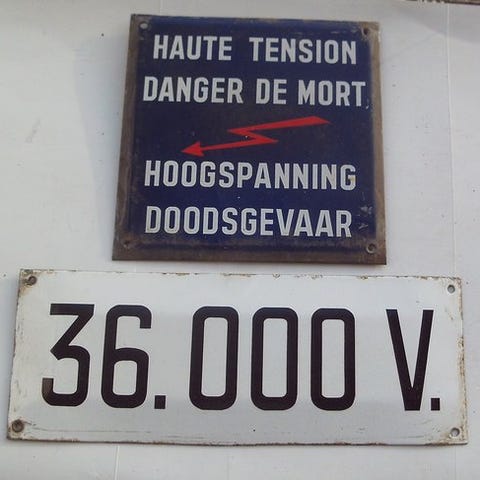 Haute Tension Danger de Mort - Høj spænding - Emaljeplade (2) - Emalje