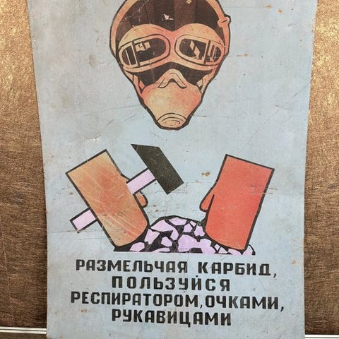 Autentisk sovjetisk industrielt emaljeskilt fra midten af det 20. århundrede, brugt på elektriske transformerstationer og kraftværker i hele USSR.